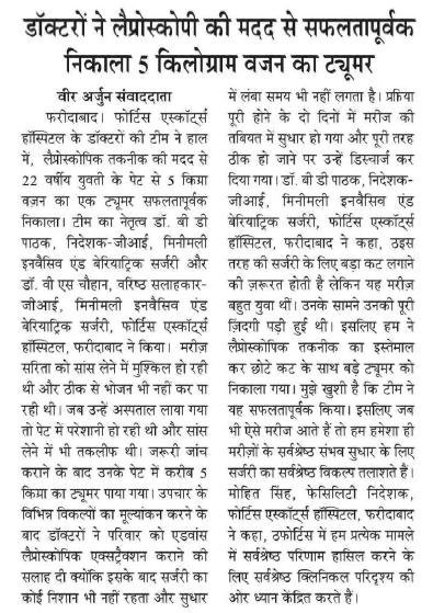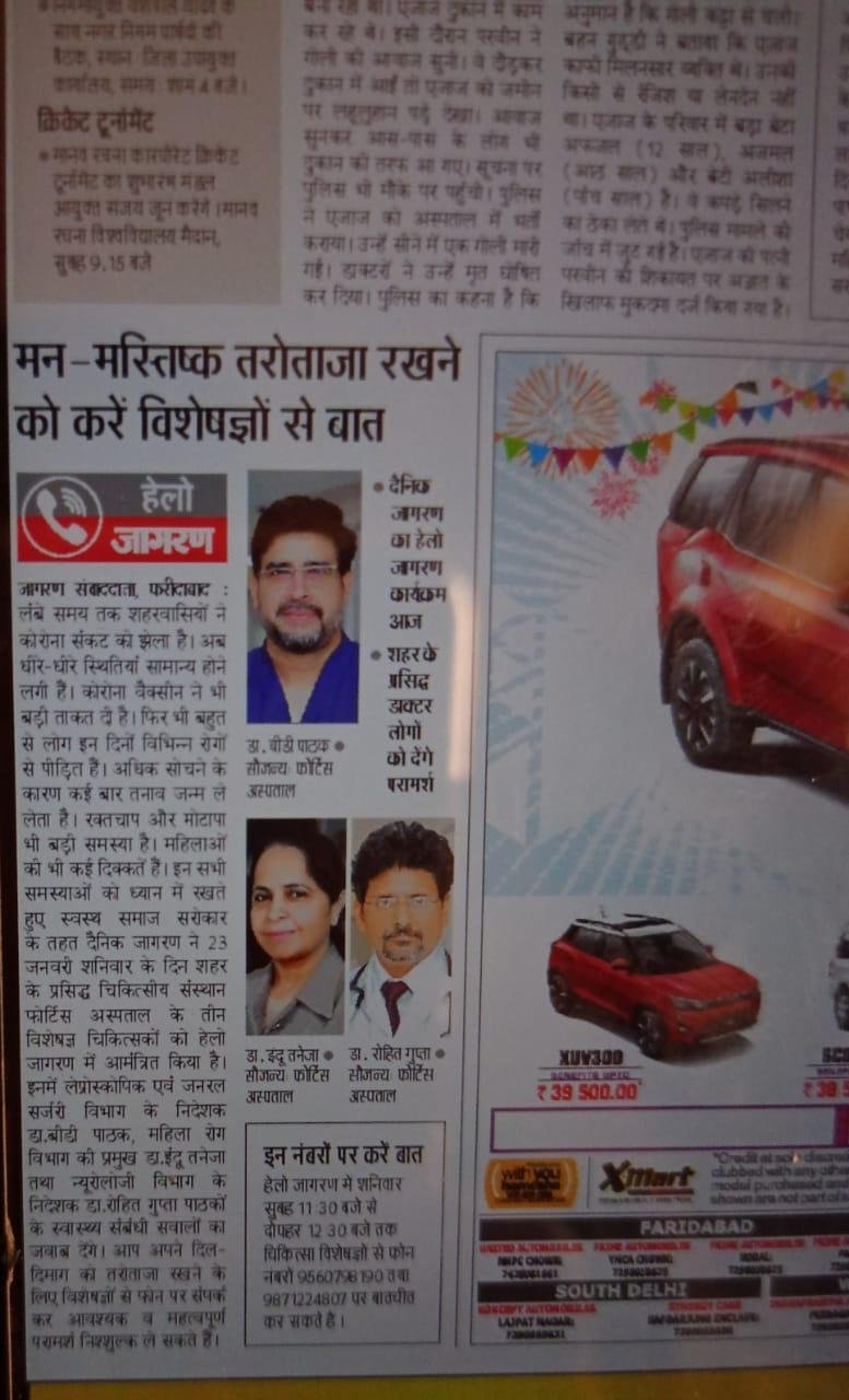 OPD Address: Fortis Escorts Hospital, Neelam Bata Road, Faridabad-121001
